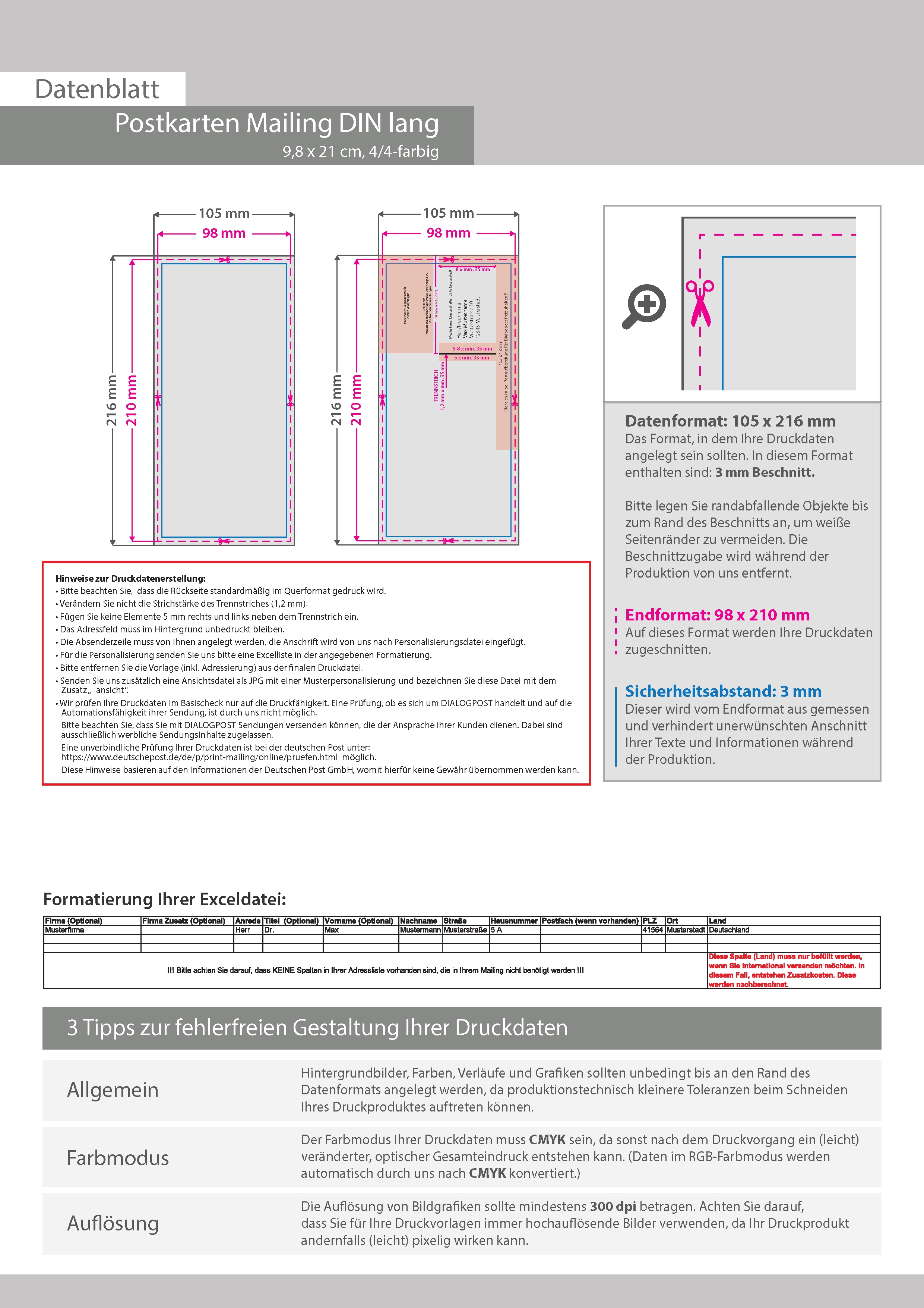 Postkarten-Mailing DIN lang (9,8 cm x 21,0 cm)