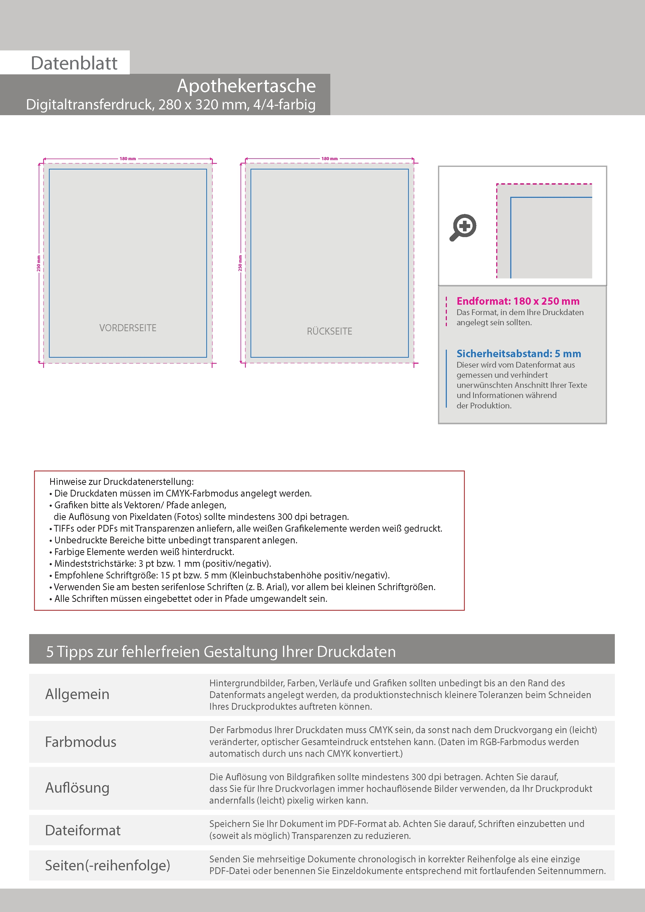 Apothekertasche (28 x 32 cm), beidseitig bedruckt in brillanter Fotoqualität
